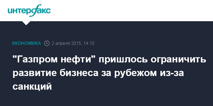 "Газпром нефти" пришлось ограничить развитие бизнеса за рубежом из-за санкций