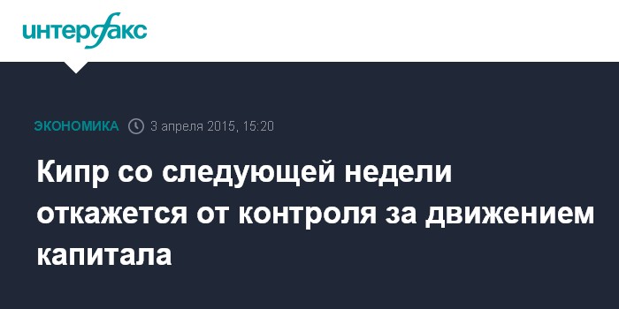 Москва. 3 апреля. INTERFAX.RU – Правительство Кипра с 6 апреля снимет последние ограничения движения капитала, введенные в марте 2013 года в рамках предоставления островному государству международной финансовой помощи в размере 10 млрд евро, сообщает агентство Bloomberg.