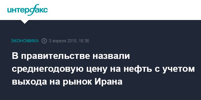 Москва. 3 апреля. INTERFAX.RU – Вице-премьер Аркадий Дворкович считает реалистичным действующий прогноз по среднегодовой цене на нефть в 2015 году в $50 за баррель даже с учетом выхода на рынок нефти из Ирана.