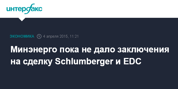 Москва. 4 апреля. INTERFAX.RU - Минэнерго пока не дало своего заключения на сделку между Schlumberger и Eurasia Drilling Company, сообщил журналистам глава Минэнерго Александр Новак.