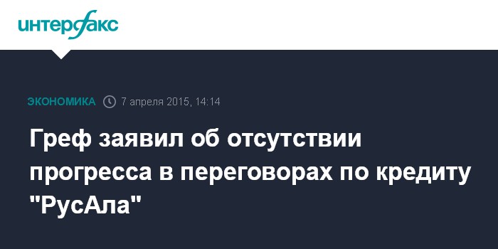 Греф заявил об отсутствии прогресса в переговорах по кредиту "РусАла"