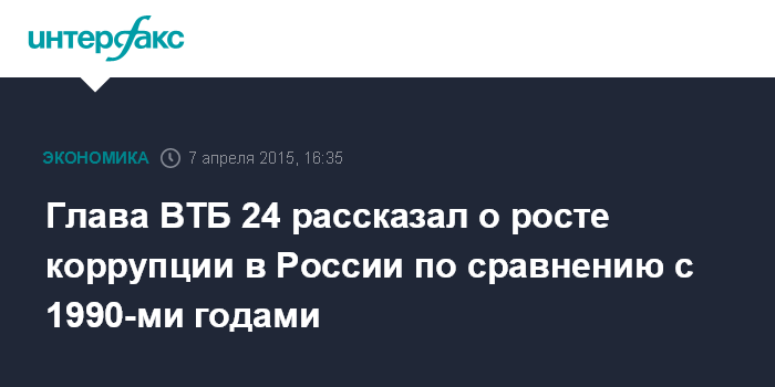 Глава ВТБ 24 рассказал о росте коррупции в России по сравнению с 1990-ми годами