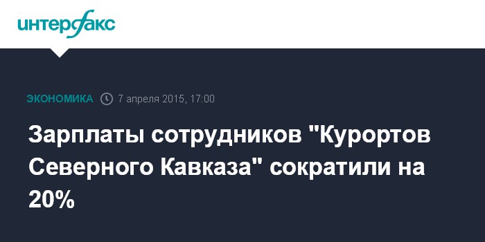 Москва. 7 апреля. INTERFAX.RU – "Курорты Северного Кавказа" сократили зарплаты сотрудникам на 20%, сообщает пресс-служба компании.