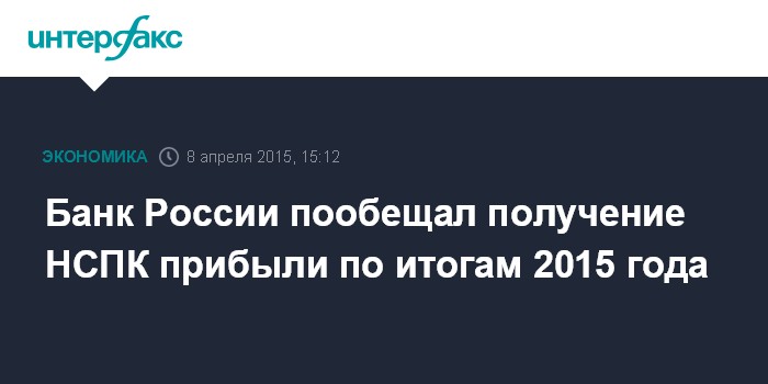 Банк России пообещал получение НСПК прибыли по итогам 2015 года