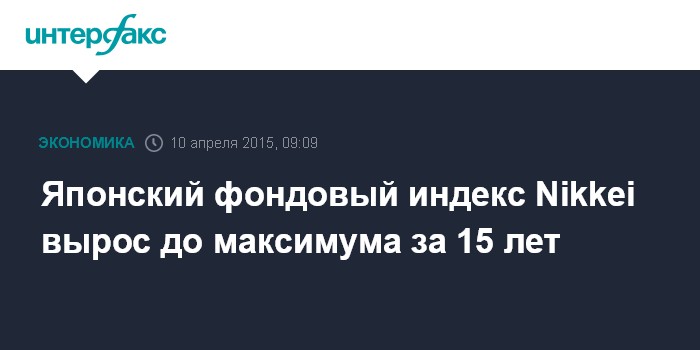 Японский фондовый индекс Nikkei вырос до максимума за 15 лет
