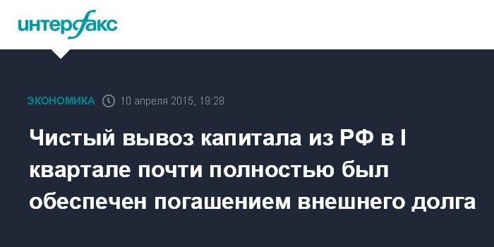 Чистый вывоз капитала из РФ в I квартале почти полностью был обеспечен погашением внешнего долга
