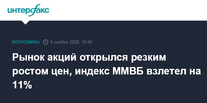 Рынок акций открылся резким ростом цен, индекс ММВБ взлетел на 11%