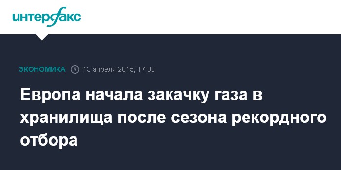 Москва. 13 апреля. INTERFAX.RU – Европейские газовики начали сезон закачки газа в подземные хранилища: с 10 апреля объем закачки стабильно превышает отбор газа из подземок, свидетельствуют данные портала Gas Infrastructure Europe.