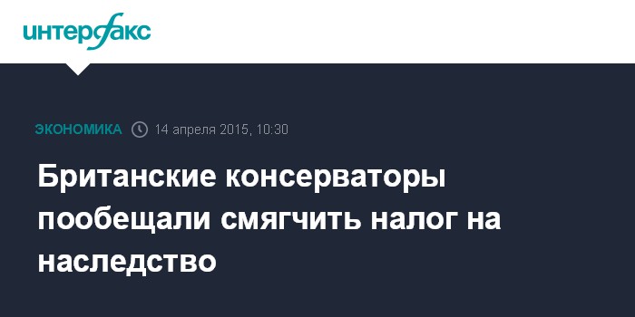Москва. 14 апреля. INTERFAX.RU – Правящая Консервативная партия Великобритании планирует отменить налог на передаваемую по наследству недвижимость, стоимость которой не превышает 1 млн фунтов стерлингов ($1,5 млн) в случае победы на выборах, передает BBC News.