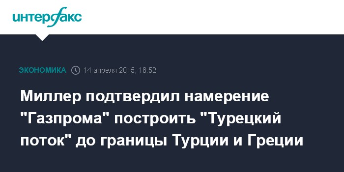 Москва. 14 апреля. INTERFAX.RU – "Газпром" построит "Турецкий поток" до границы Турции и Греции и готов ждать, когда появятся транспортные мощности с европейской стороны.