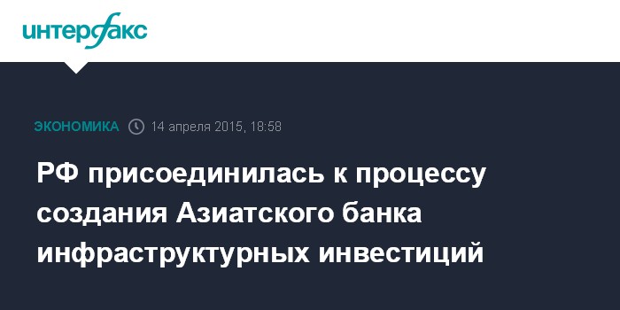РФ присоединилась к процессу создания Азиатского банка инфраструктурных инвестиций