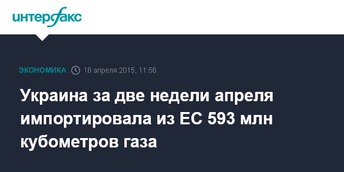 Москва. 16 апреля. INTERFAX.RU - Украина 1-15 апреля 2015 года импортировала из Европы 593 млн кубометров газа, сообщает пресс-служба "Укртрансгаза".