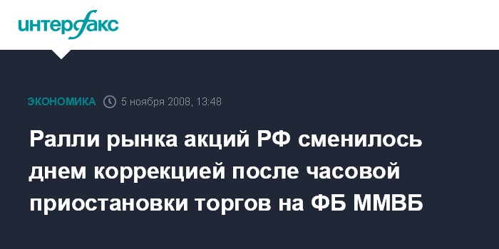 Ралли рынка акций РФ сменилось днем коррекцией после часовой приостановки торгов на ФБ ММВБ
