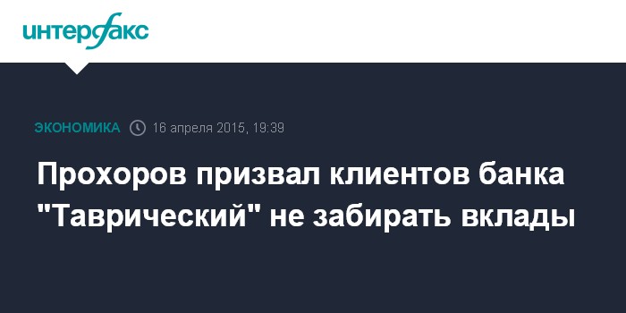 Москва. 16 апреля. INTERFAX.RU - Бизнесмен, акционер банка "Международный финансовый клуб" (МФК) Михаил Прохоров призывает клиентов банка "Таврический" (МФК является санатором "Таврического") не забирать вклады. Видеообращение Прохорова к клиентам размещено на сайте банка.