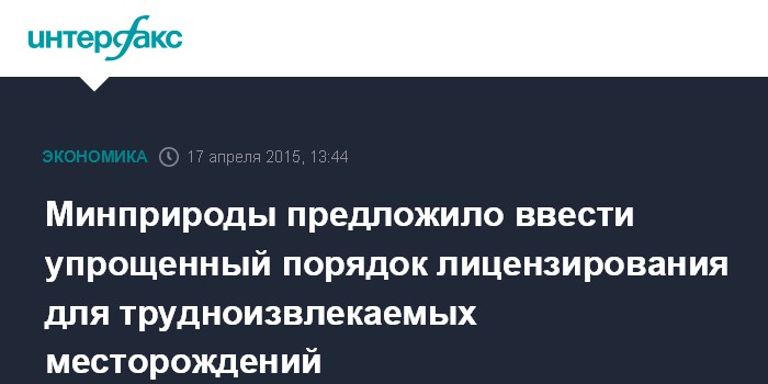 Москва. 17 апреля. INTERFAX.RU – Минприроды предложило ввести упрощенный порядок лицензирования для трудноизвлекаемых месторождений, сообщил премьер-министр РФ Дмитрий Медведев на президиуме совета по модернизации.