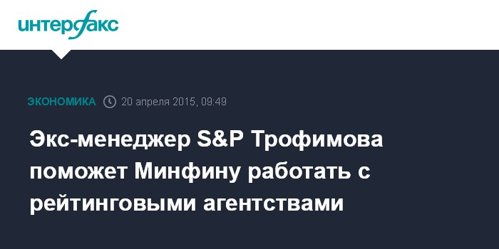 Экс-менеджер S&P Трофимова поможет Минфину работать с рейтинговыми агентствами