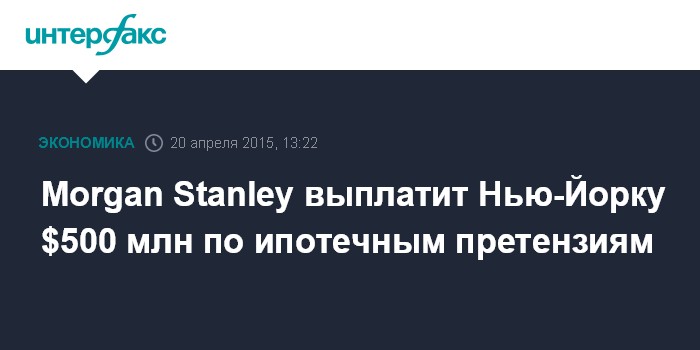 Morgan Stanley выплатит Нью-Йорку $500 млн по ипотечным претензиям