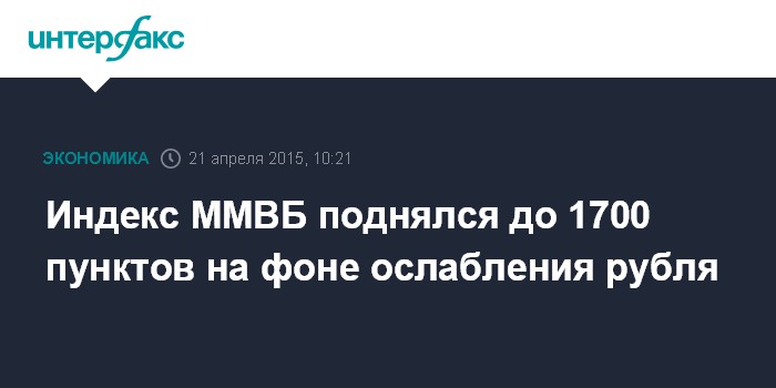 Москва. 21 апреля. INTERFAX.RU – Индекс ММВБ, один из основных российских фондовых индикаторов, утром во вторник протестировал на подъеме рубеж 1700 пунктов на фоне ослабления рубля из-за повышения Банком Росси ставок на аукционах валютного репо.