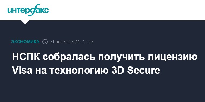 Москва. 21 апреля. INTERFAX.RU – Национальная система платежных карт планирует получить лицензию Visa на использование технологии 3D Secure, сообщил гендиректор НСПК Владимир Комлев на конференции "Банковские карты: практика и трансформация" во вторник.