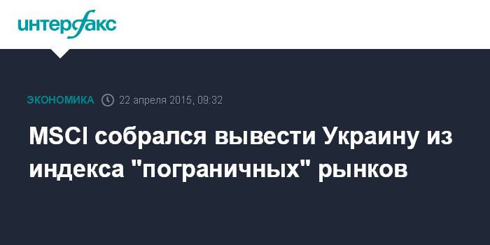Москва. 22 апреля. INTERFAX.RU – MSCI Inc может вывести Украину из индекса "пограничных" рынков (MSCI Frontier Markets Index).