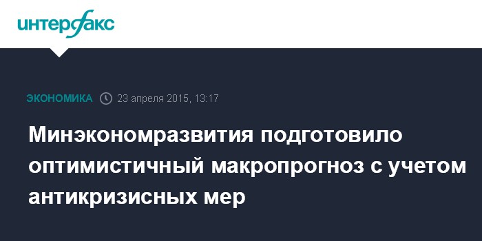Москва. 23 апреля. INTERFAX.RU – Базовый вариант макропрогноза Минэкономразвития не учитывает влияние дополнительных мер экономической политики правительства, поэтому министерствоподготовило и внесло в правительство более оптимистичный вариант, в котором учтены эти меры.