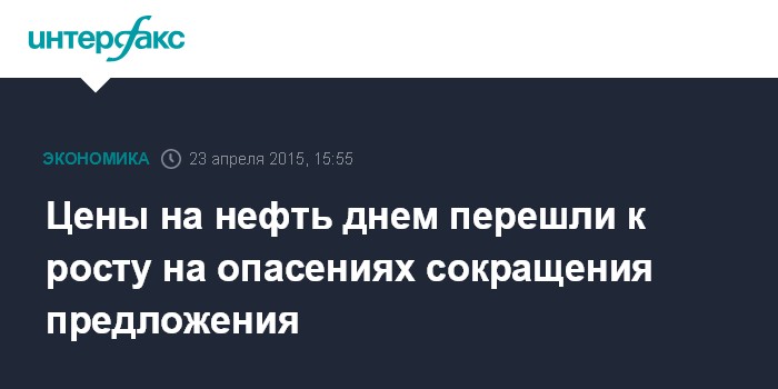Москва. 23 апреля. INTERFAX.RU – Цены на нефть перешли к росту в ходе торгов в четверг на опасениях сокращения избытка предложения на мировом рынке, сообщает агентство Bloomberg.