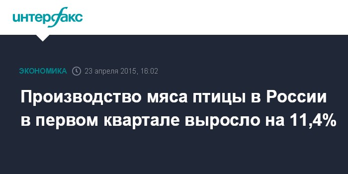 Производство мяса птицы в России в первом квартале выросло на 11,4%