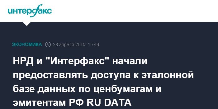 НРД и "Интерфакс" начали предоставлять доступа к эталонной базе данных по ценбумагам и эмитентам РФ RU DATA