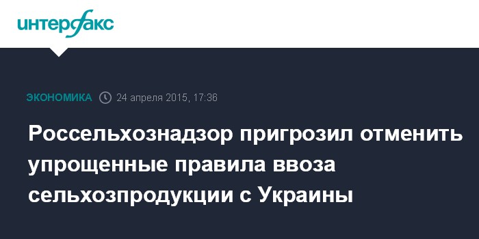 Москва. 24 апреля. INTERFAX.RU - Россельхознадзор может применить к поставкам сельхозпродукции и продовольствия с Украины правила, которые применяются для доступа на российский рынок продукции из ЕС.