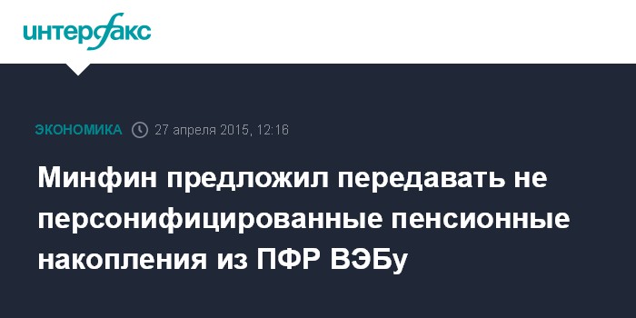 Минфин предложил передавать не персонифицированные пенсионные накопления из ПФР ВЭБу