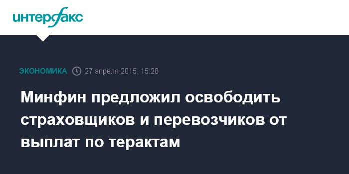 Минфин предложил освободить страховщиков и перевозчиков от выплат по терактам