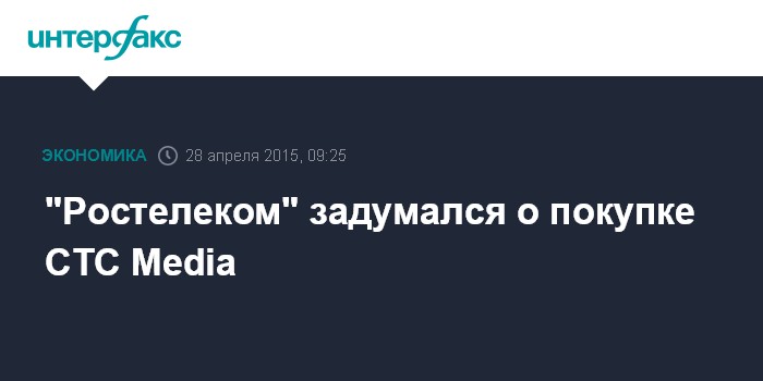 Москва. 28 апреля. INTERFAX.RU – "Ростелеком" изучает возможность покупки CTC Media: медиахолдингу нужны российские владельцы для соответствия закону об ограничении долей иностранцев в СМИ.