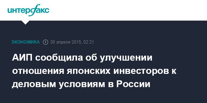 АИП сообщила об улучшении отношения японских инвесторов к деловым условиям в России