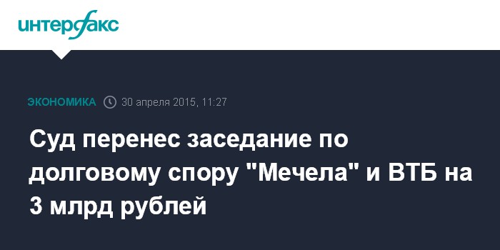 Суд перенес заседание по долговому спору "Мечела" и ВТБ на 3 млрд рублей
