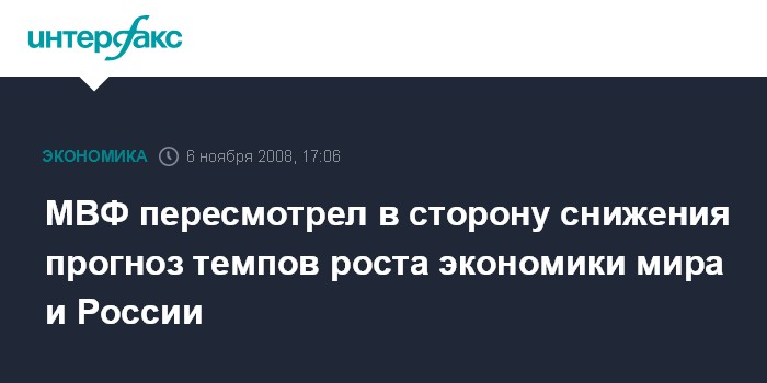 Наряду с другими странами МВФ пересмотрел в сторону понижения и темпы роста экономики России. Для 2008 г. прогноз роста ВВП снижен до 6,8% с 7%. Прогноз на 2009 г. МВФ понизил сразу на 2 процентных пункта - до 3,5% с 5,5%.