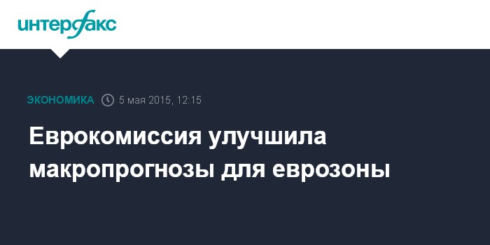 Москва. 5 мая. INTERFAX.RU – Европейская комиссия во вторник повысила прогноз роста ВВП еврозоны на 2015 год до 1,5% с ожидавшихся в феврале 1,3%, на 2016 год прогноз подтвержден на уровне 1,9%, говорится в сообщении ЕК.