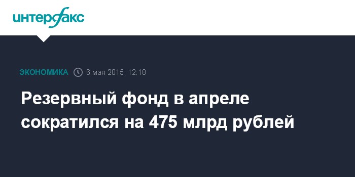 Резервный фонд в апреле сократился на 475 млрд рублей