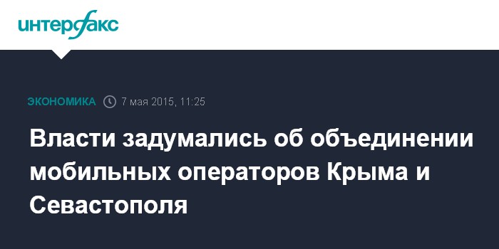 Москва. 7 мая. INTERFAX.RU – Государственные операторы мобильной связи, создаваемые в Крыму и Севастополе, будут координировать работу, возможно, что вместо двух операторов будет создана единая компания.