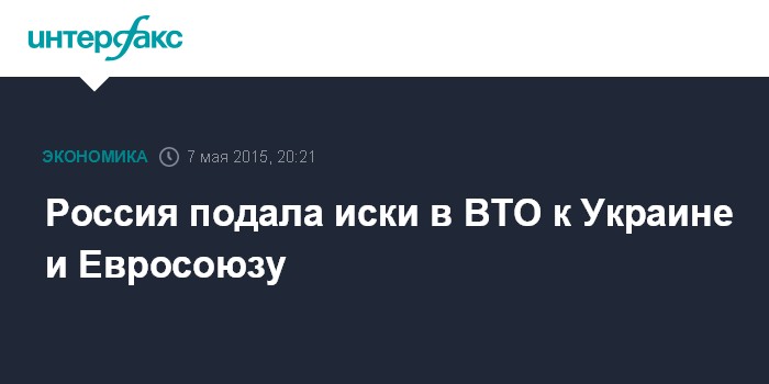 Россия подала иски в ВТО к Украине и Евросоюзу