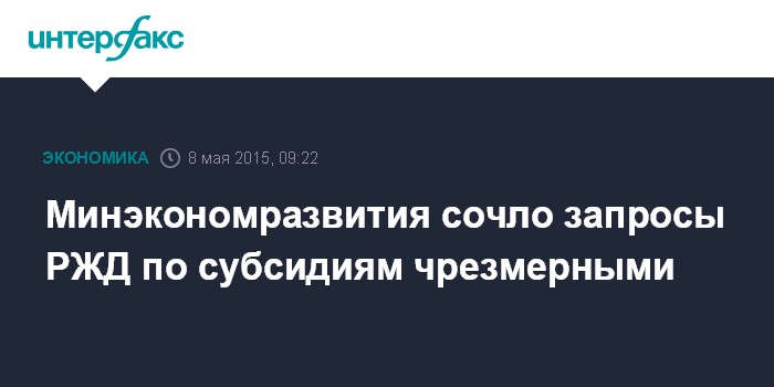 Москва. 8 мая. INTERFAX.RU – Минэкономразвития считает достаточными субсидии РЖД из бюджета на уровне 20-30 млрд руб. при индексации грузовых тарифов в 2016 году на 7,5%, пишут в пятницу "Ведомости" со ссылкой на представителя министерства.