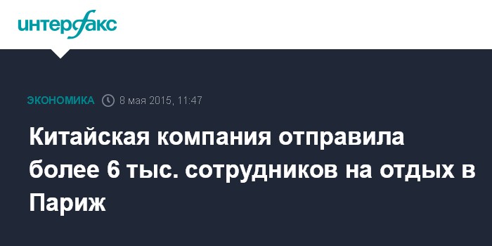Москва. 8 мая. INTERFAX.RU – Китайская корпорация "Тяньши" решила отправить более половины своих сотрудников – 6,4 тыс. человек – в четырехдневную поездку в Париж, сообщает британская газета The Guardian.