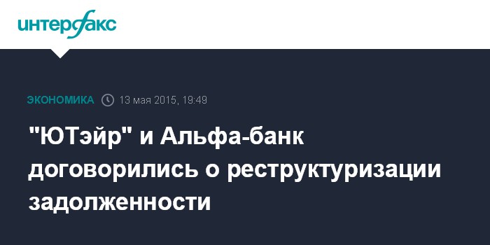 "ЮТэйр" и Альфа-банк договорились о реструктуризации задолженности