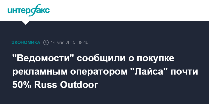 "Ведомости" сообщили о покупке рекламным оператором "Лайса" почти 50% Russ Outdoor
