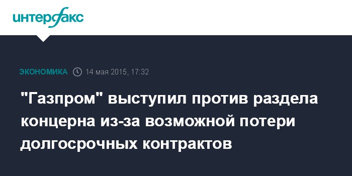 "Газпром" выступил против раздела концерна из-за возможной потери долгосрочных контрактов