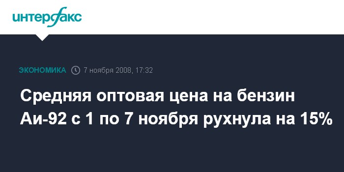Средняя оптовая цена на бензин Аи-92 с 1 по 7 ноября рухнула на 15%