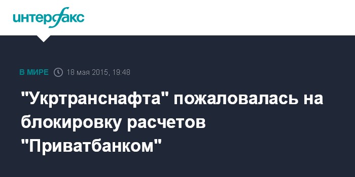 "Действия "Приватбанка", начиная с 8 мая 2015 года, сделали невозможным проведение расчетов и полностью заблокировали хозяйственную деятельность "Укртранснафты". Кроме того, такими действиями банка создана и дополнительная реальная угроза невозможности для "Укртранснафты" перечисления в госбюджет рентной платы за транспортировку нефти в сумме 50 млн грн, конечный срок оплаты которой наступает 20 мая, а также своевременной выплаты заработной платы более 4 тыс. работников "Укртранснафты", - говорится в письме, обнародованном исполнительным директором НАК "Нафтогаз Украины" Андреем Пасишником.