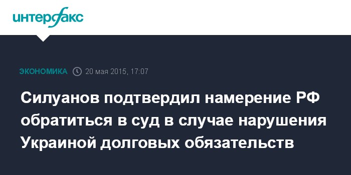 Москва. 20 мая. INTERFAX.RU - Глава министерства финансов РФ Антон Силуанов заявил, что Москва обратится в международный суд в том случае, если Киев будет нарушать долговые обязательства.
