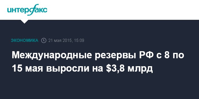 Международные резервы РФ с 8 по 15 мая выросли на $3,8 млрд