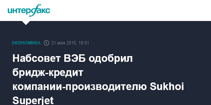 Набсовет ВЭБ одобрил бридж-кредит компании-производителю Sukhoi Superjet