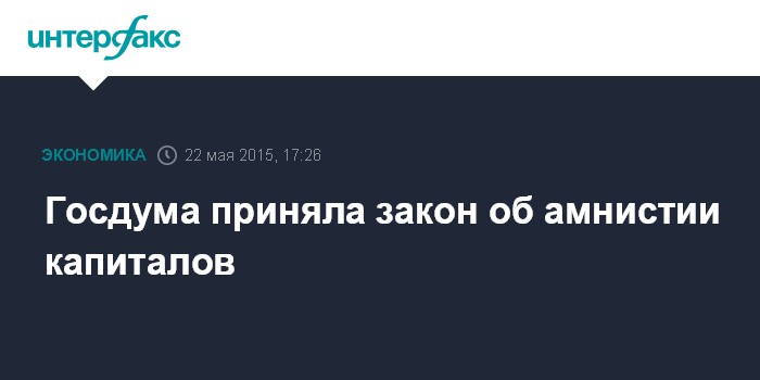 Москва. 22 мая. INTERFAX.RU - Госдума на заседании в пятницу приняла в третьем чтении закон об амнистии капиталов.